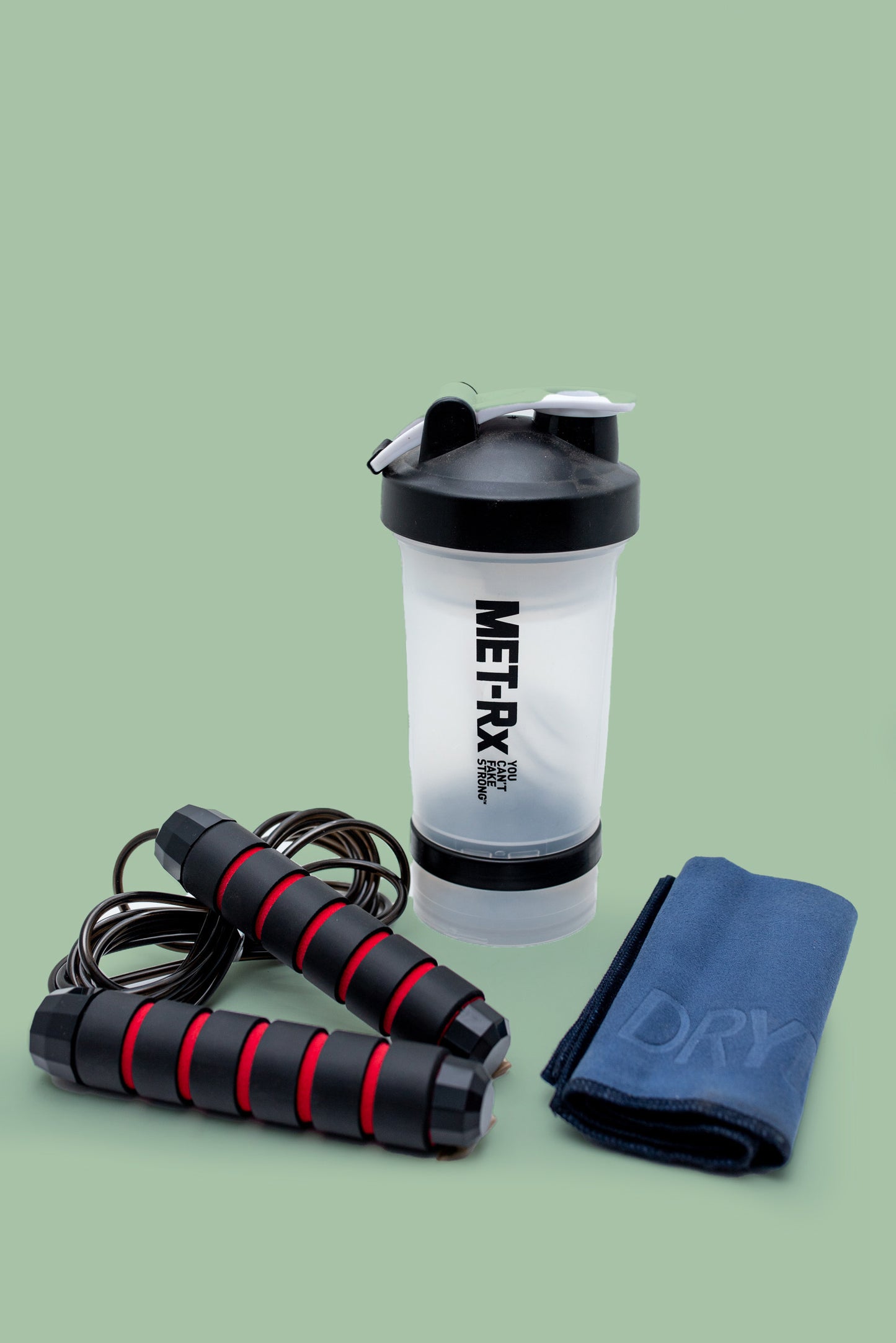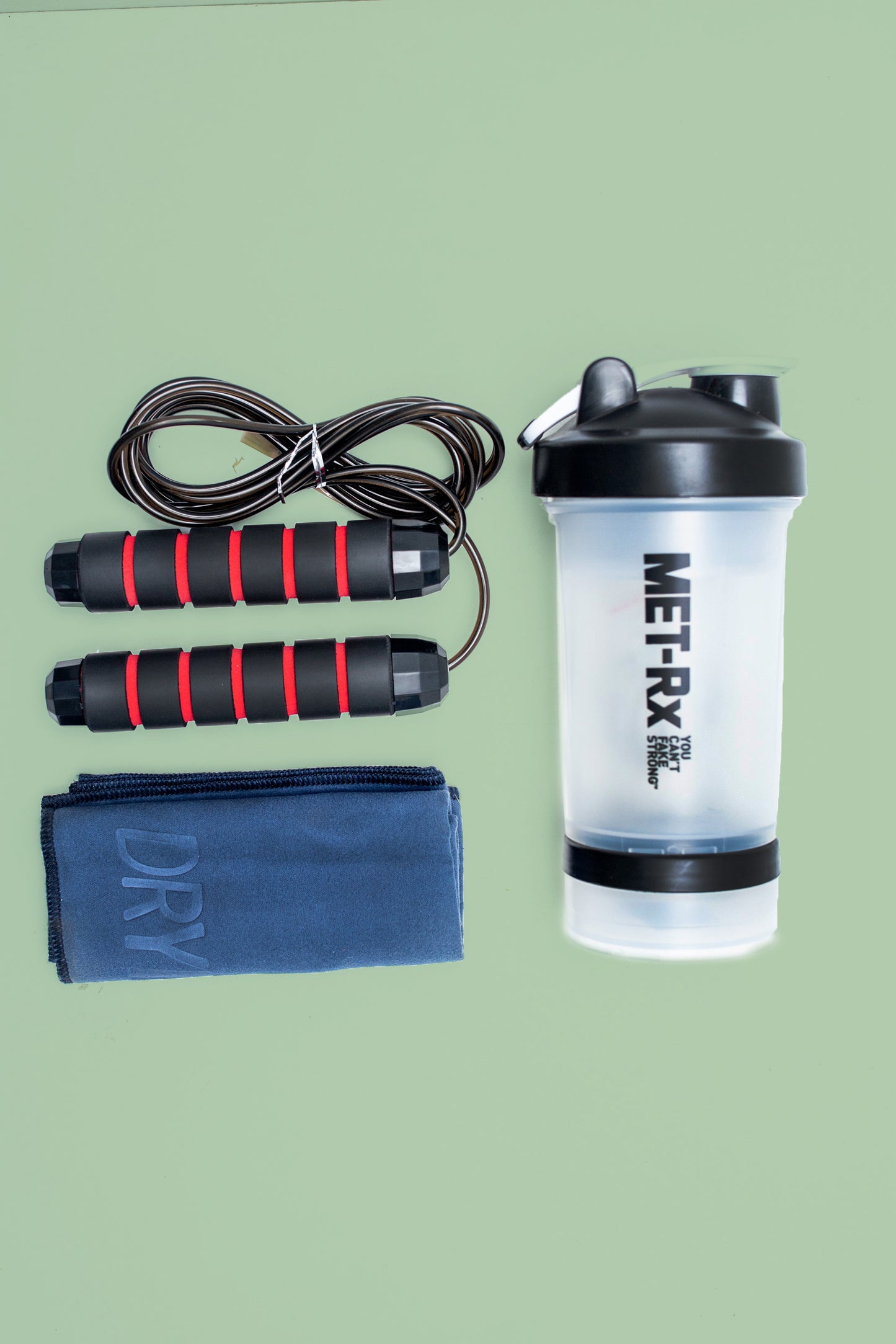Salir a correr, brincar la cuerda y ver progreso día con día no tiene precio. Saca esa sonrisa y energía junto con él. El Kit es perfecto ya que cuenta con una cuerda para brincar, un vaso específico para llevar tus bebidas deportivas y además una toalla para ejercicio.